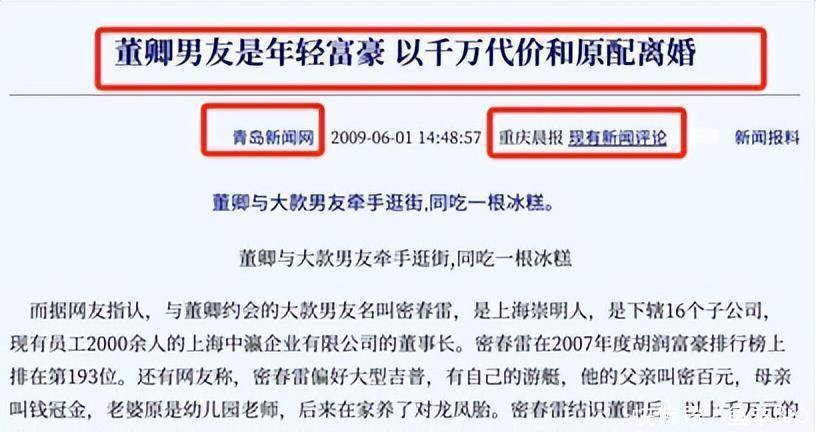 在主持界登顶后,董卿把目光投向了商界名流。与富豪密春雷的恋情曝光时,可谓一石激起千层浪。有媒体报道,为与董卿在一起,这位商界大亨不惜掷千金结束前段婚姻。